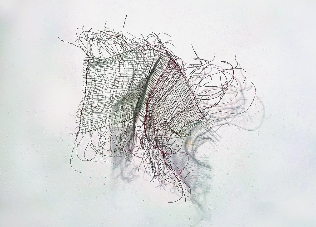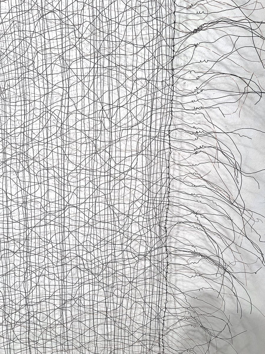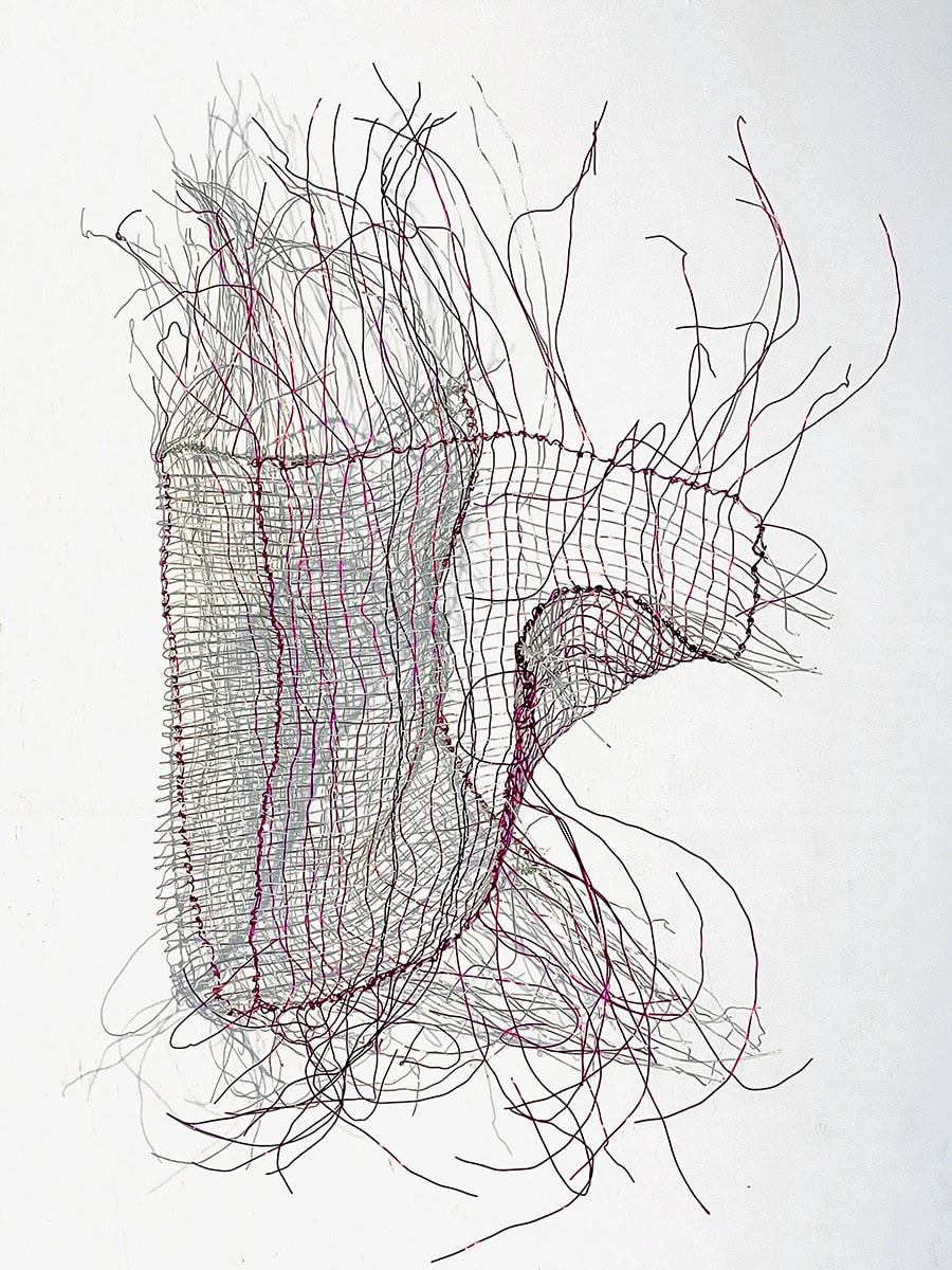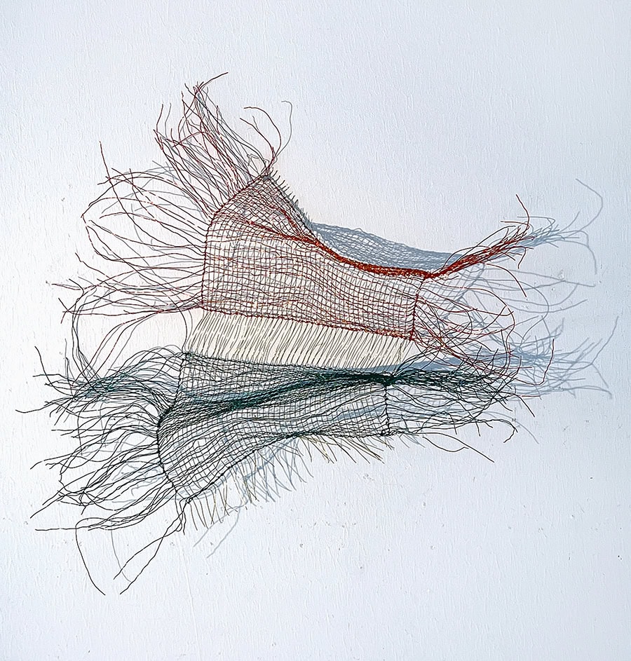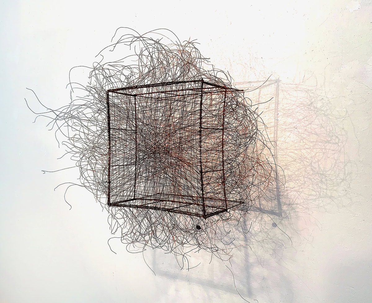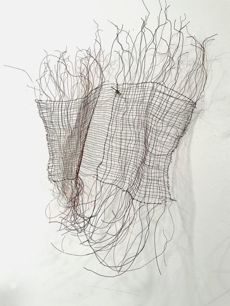 Filigrane Drahtformen verbinden Dichte und Transparenz – aus Geflecht und Schatten entstehen Werke mit leiser Tiefe.