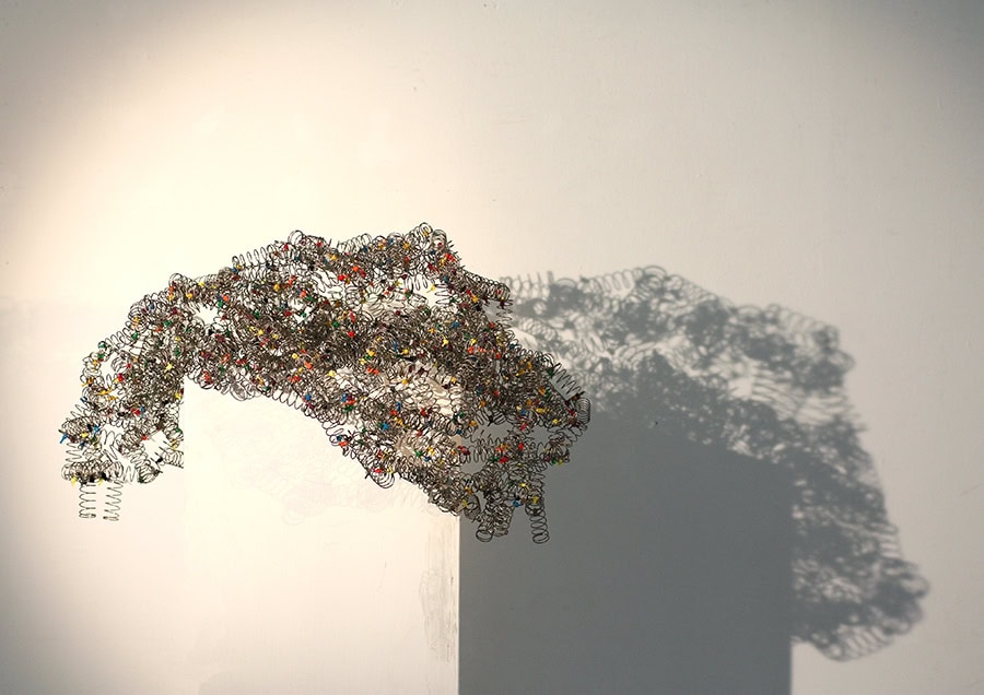 Zarte Konstruktionen aus Metallfedern – filigran, beweglich und voller Spannung zwischen Leichtigkeit und Struktur.
